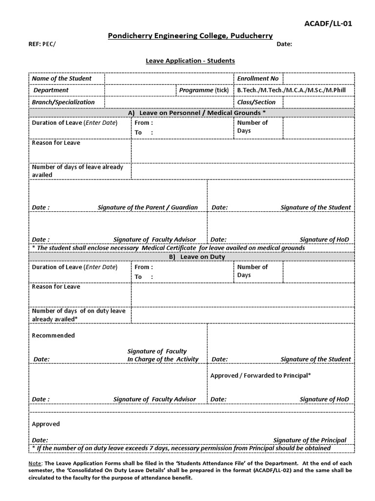Note: The Leave Application Forms shall be filed in the Students Attendance File of the Department. At the end of each