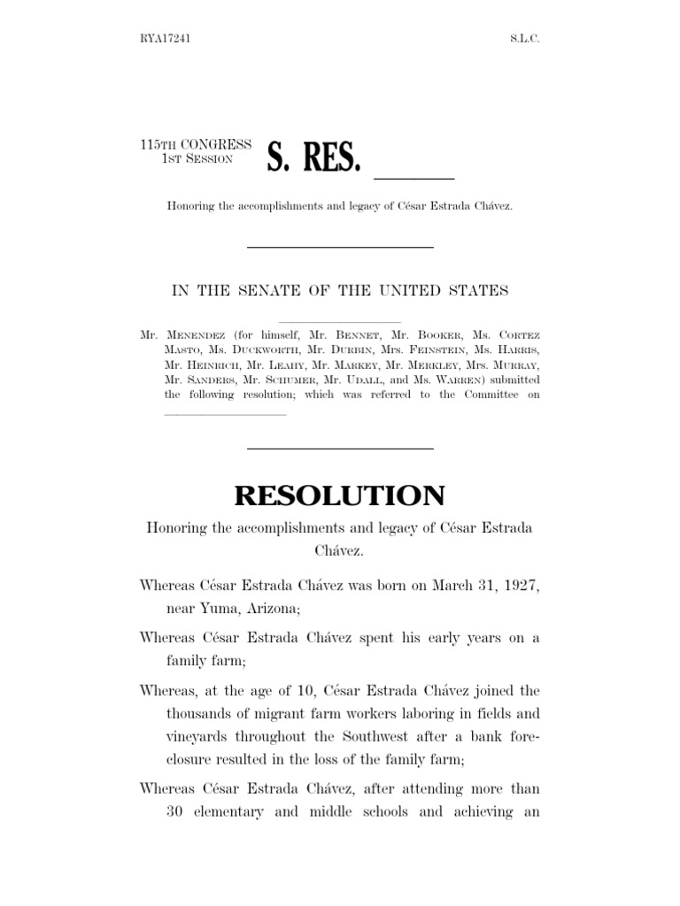 Honoring the accomplishments and legacy of Ce´sar Estrada Cha´ vez.