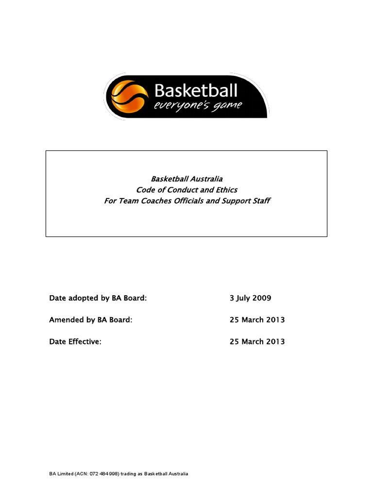 As a coach, official or support staff member appointed by Basketball Australia ("BA"),