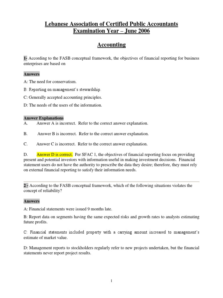 FASB Financial Reporting Exam Questions