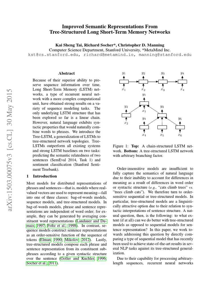 Kai Sheng Tai, Richard Socher*, Christopher D. Manning