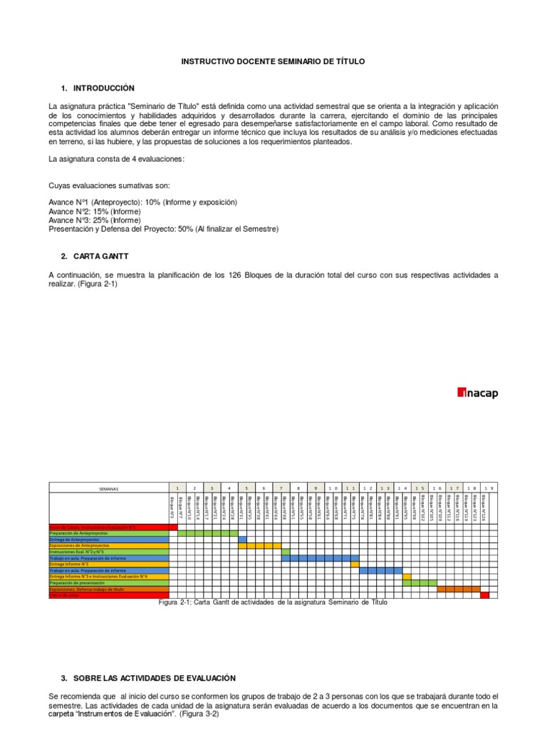 Figura 2-1: Carta Gantt de actividades de la asignatura Seminario de Título