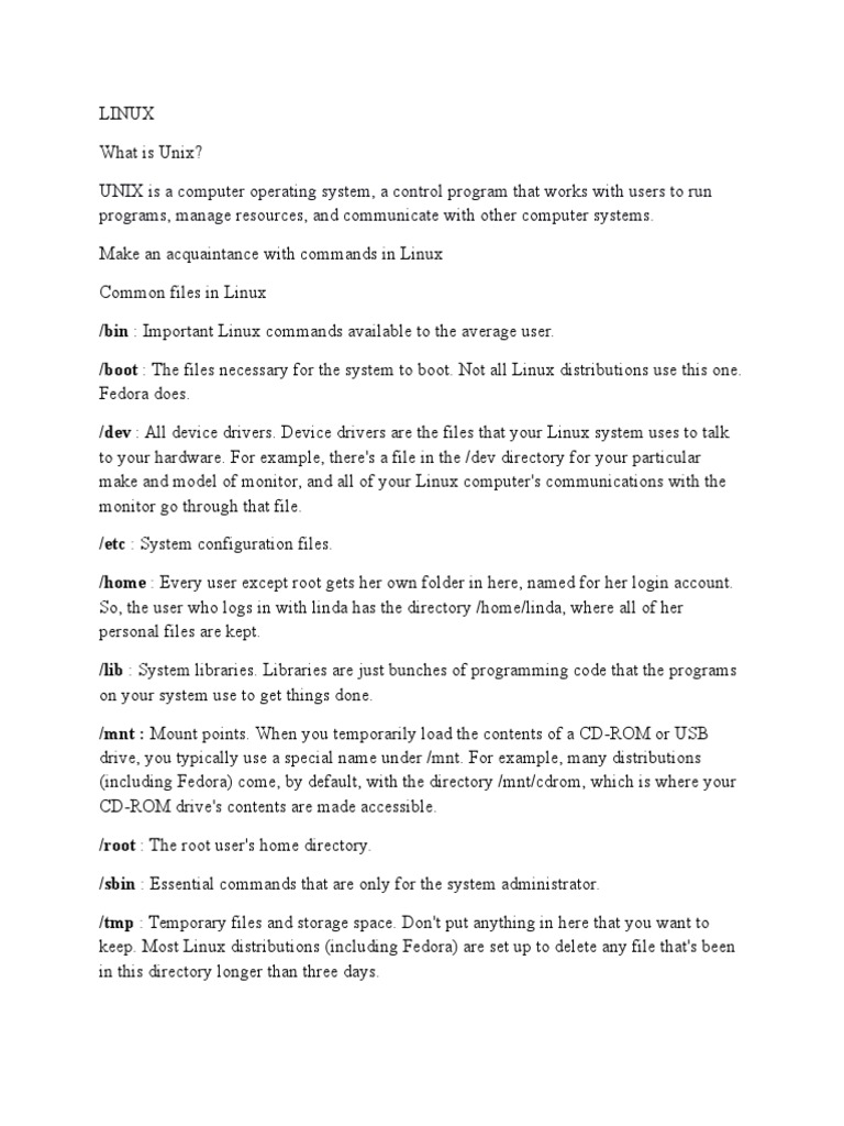 /mnt : Mount points. When you temporarily load the contents of a CD-ROM or USB