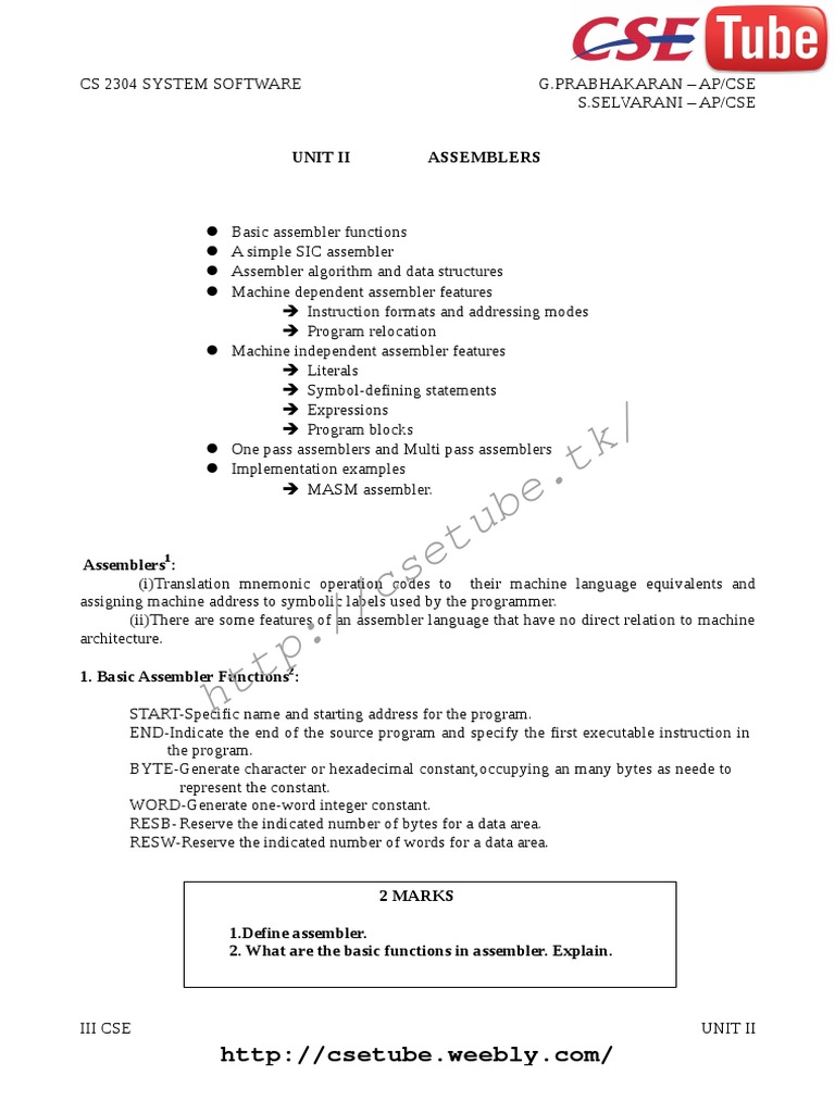 UNIT II ASSEMBLERS