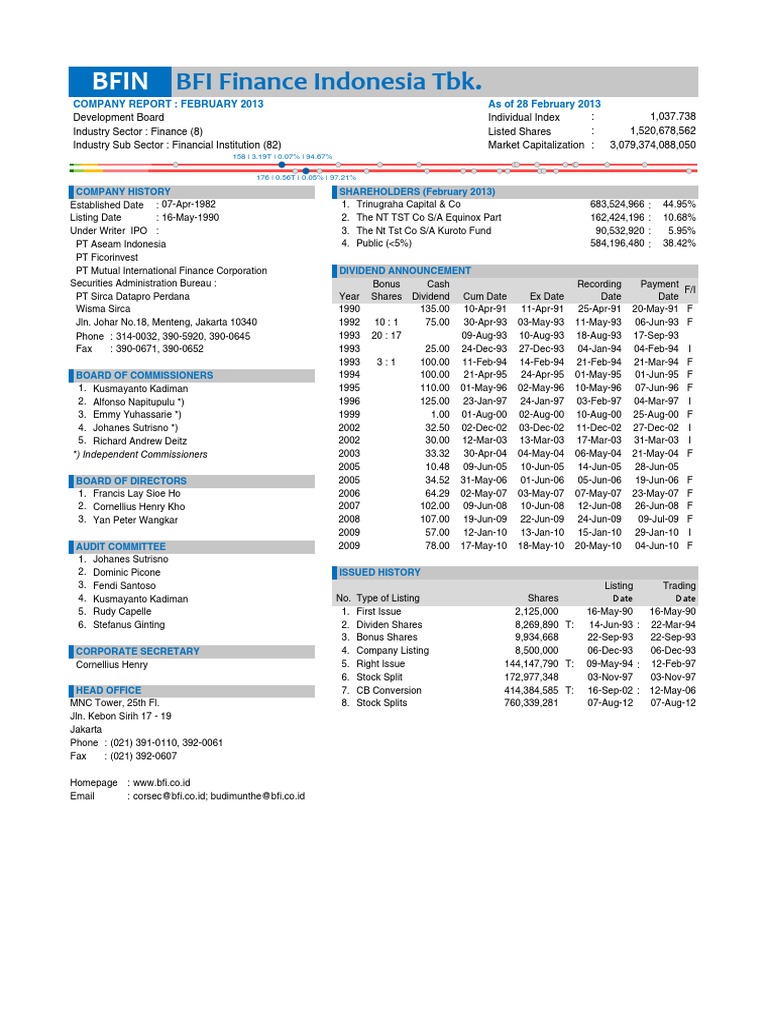 COMPANY REPORT : FEBRUARY 2013 As of 28 February 2013