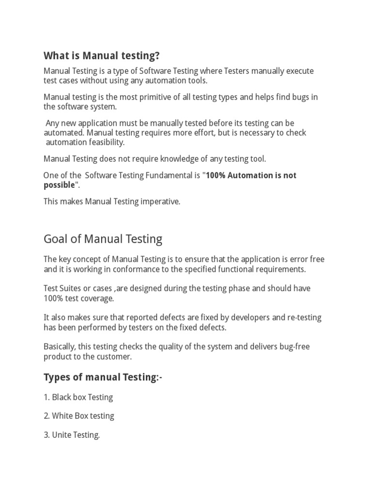 Manual testing is the most primitive of all testing types and helps find bugs in