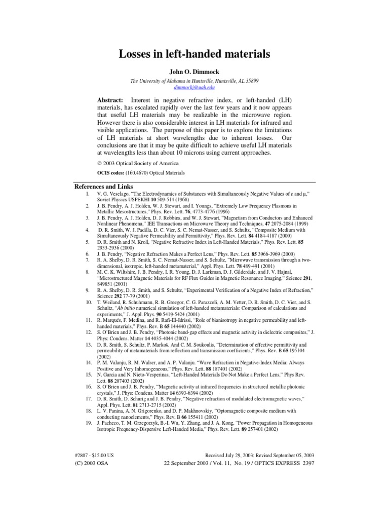 Refraction and Metamaterials in a special Focus Issue published on 7 April 2003. Most of the