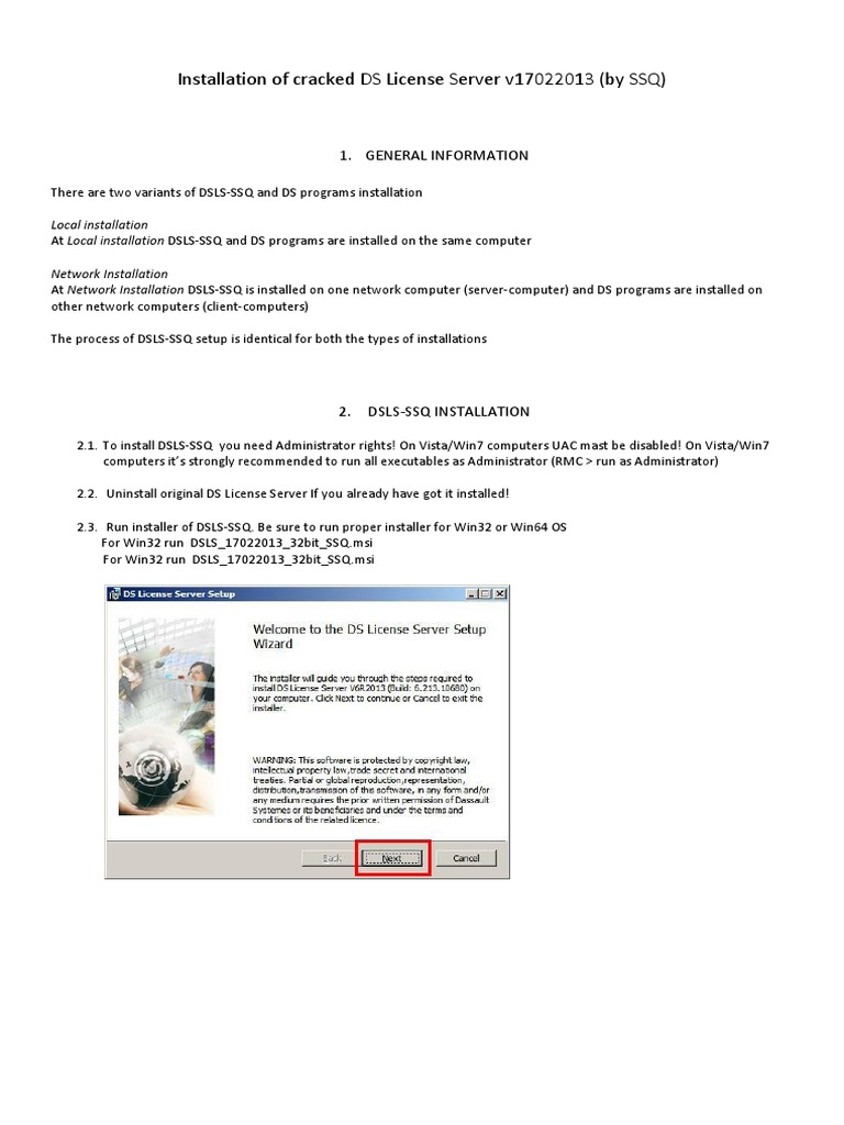 Installation of cracked DS License Server v17022013 (by SSQ)