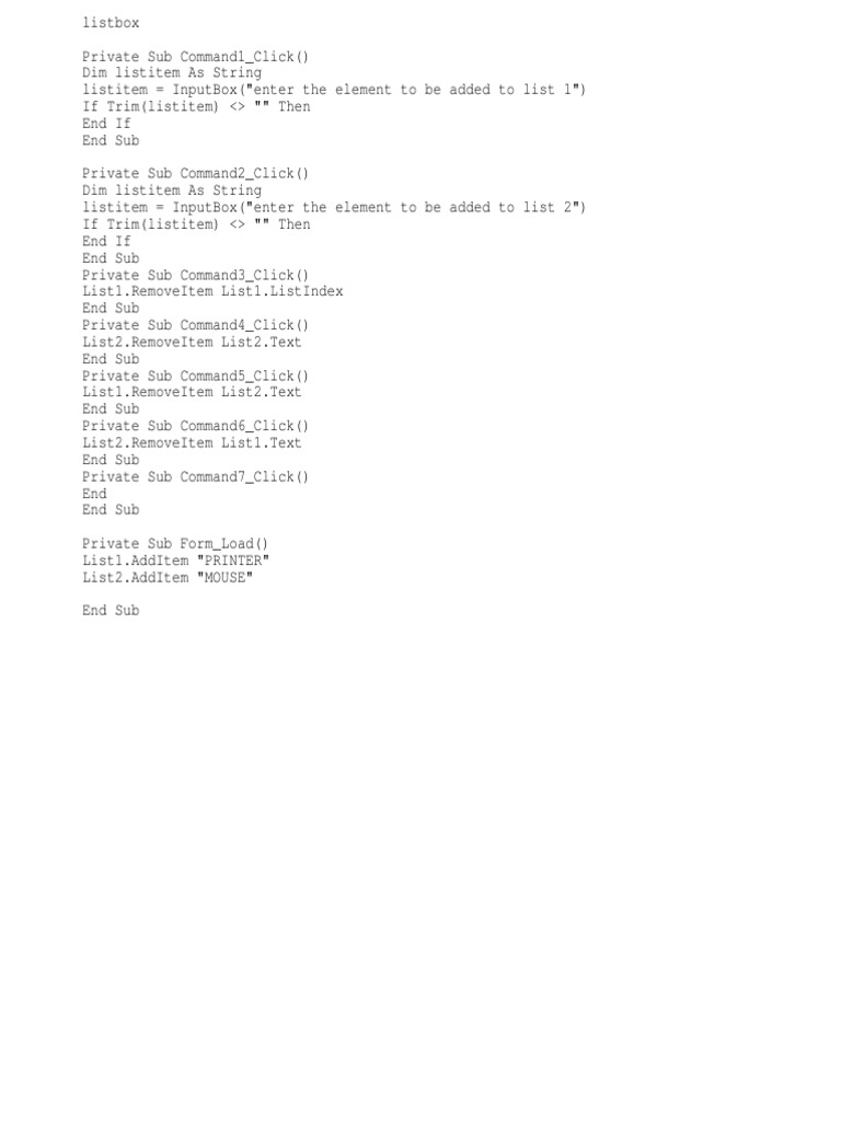 listitem = InputBox("enter the element to be added to list 2")