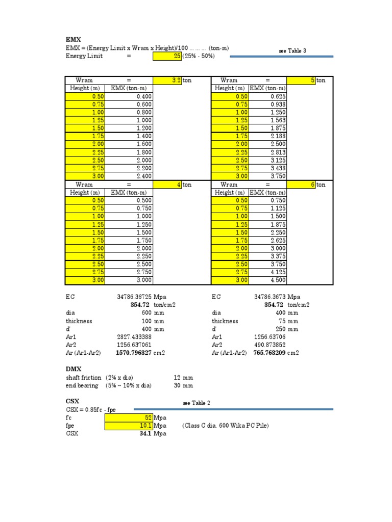 EMX = (Energy Limit x Wram x Height)/100 (ton-m) see Table 3