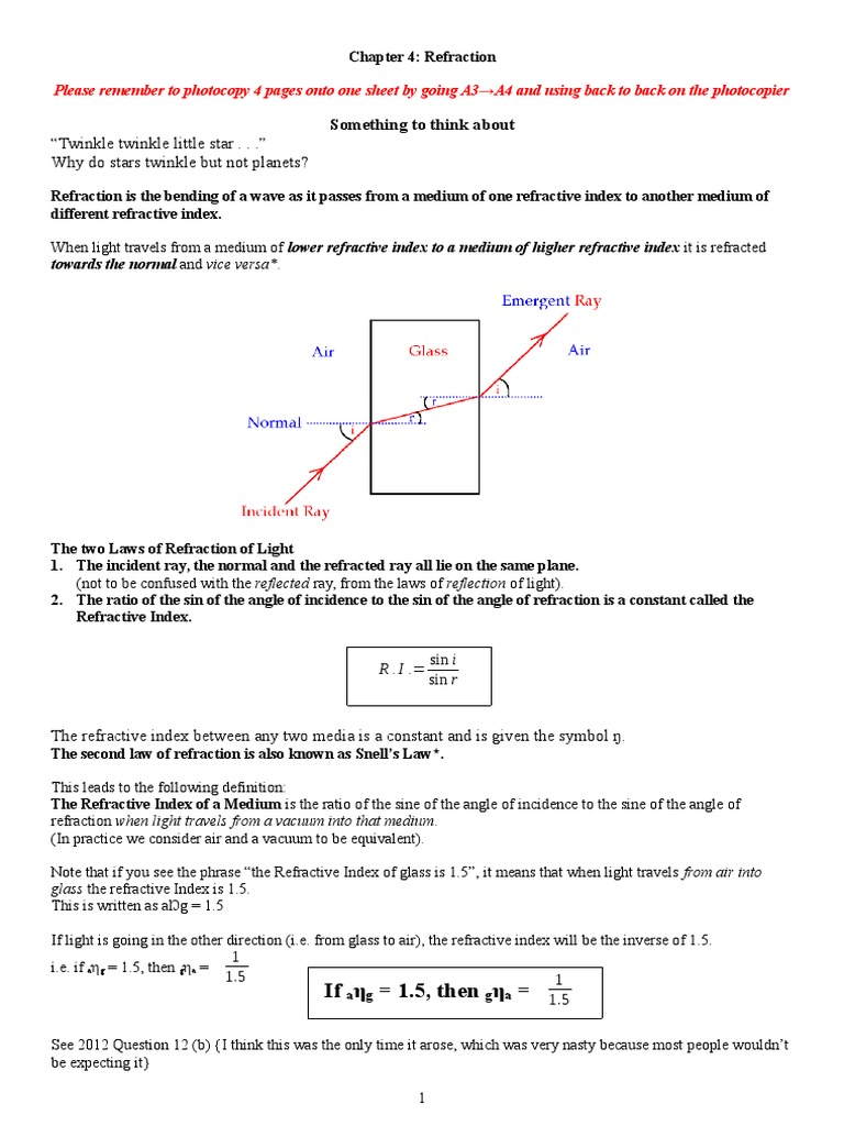 (ii) n= 1/ sin C n = 1/sin 41.80 n = 1/0.67 n = 1.5.