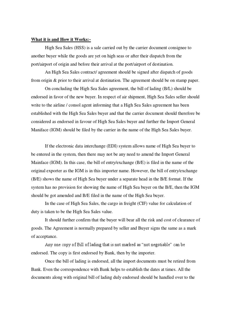 An High Sea Sales contract/ agreement should be signed after dispatch of goods