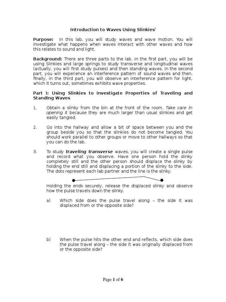 Part I: Using Slinkies to Investigate Properties of Traveling and