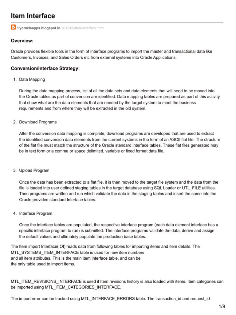 Oracle provides flexible tools in the form of Interface programs to import the master and transactional data like