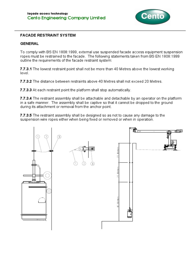 [Link] The distance between restraints above 40 Metres shall not exceed 20 Metres.