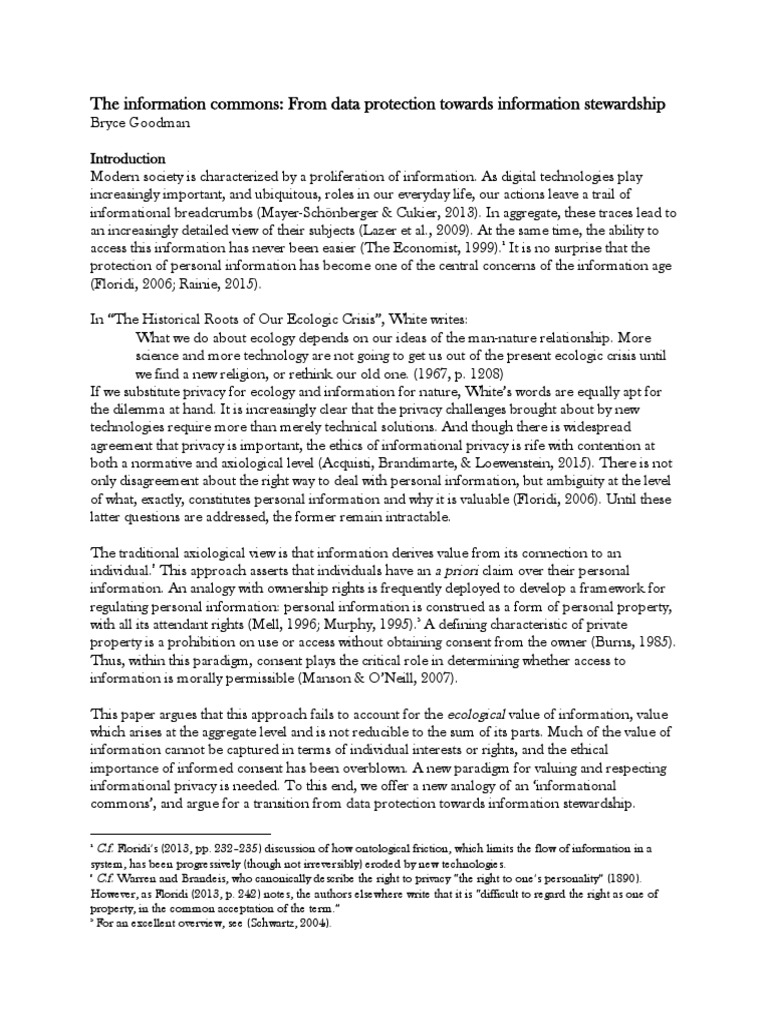 commons, and argue for a transition from data protection towards information stewardship.