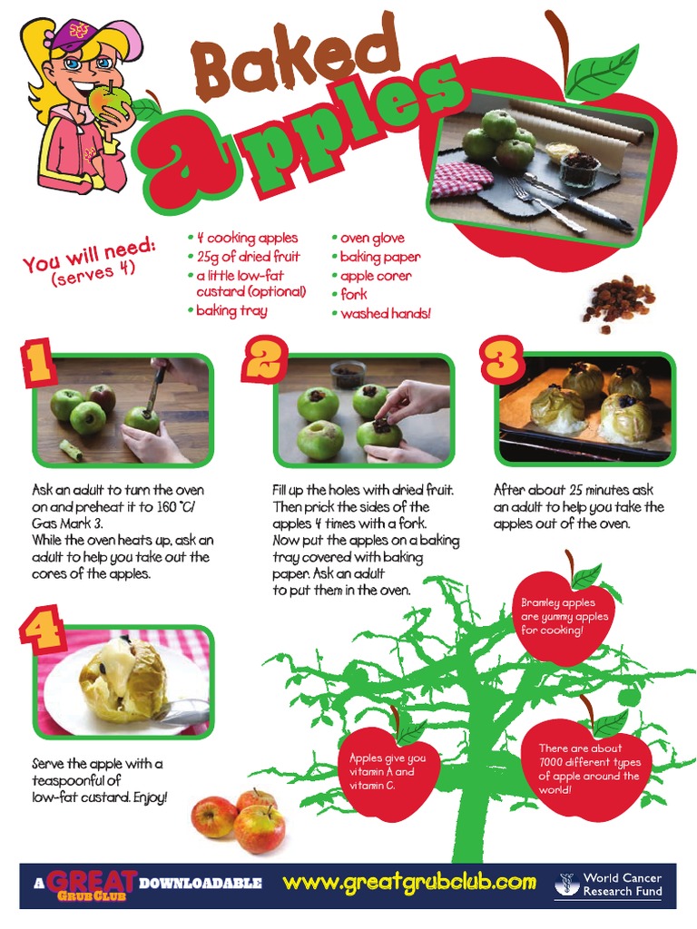 Gas Mark 3. apples 4 times with a fork. apples out of the oven.