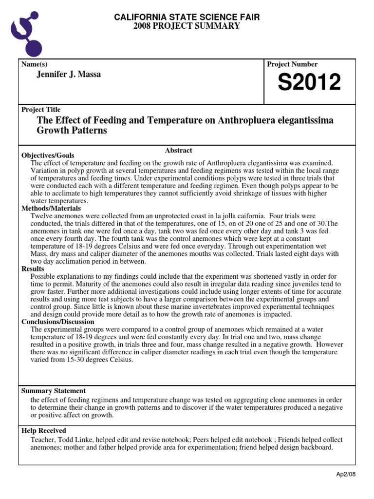 Twelve anemones were collected from an unprotected coast in la jolla caifornia. Four trials were