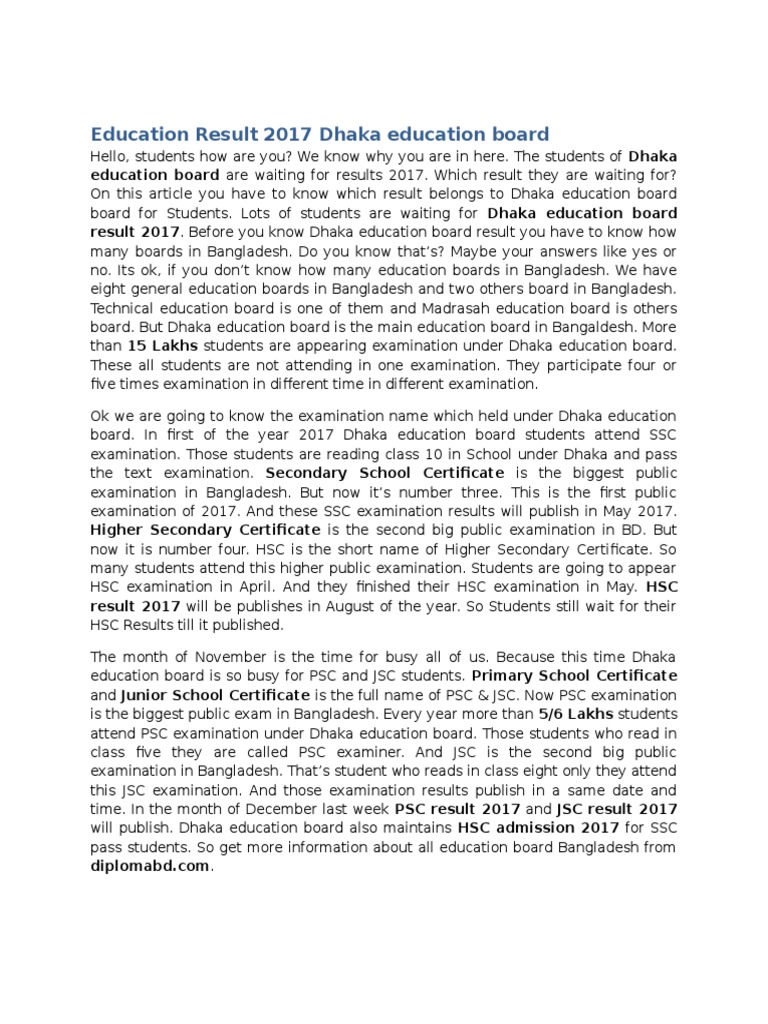 . $efore you know !haka education oard result you have to know how%any oards in $angladesh. !o you know that&s? 'aye your answers like yes orno. (ts ok, if you don&t know how %any education oards in $angladesh. We haveeight general education oards in $angladesh and two others oard in $angladesh. Technical education oard is one of the% and 'adrasah education oard is othersoard. $ut !haka education oard is the %ain education oard in $angaldesh. 'orethan