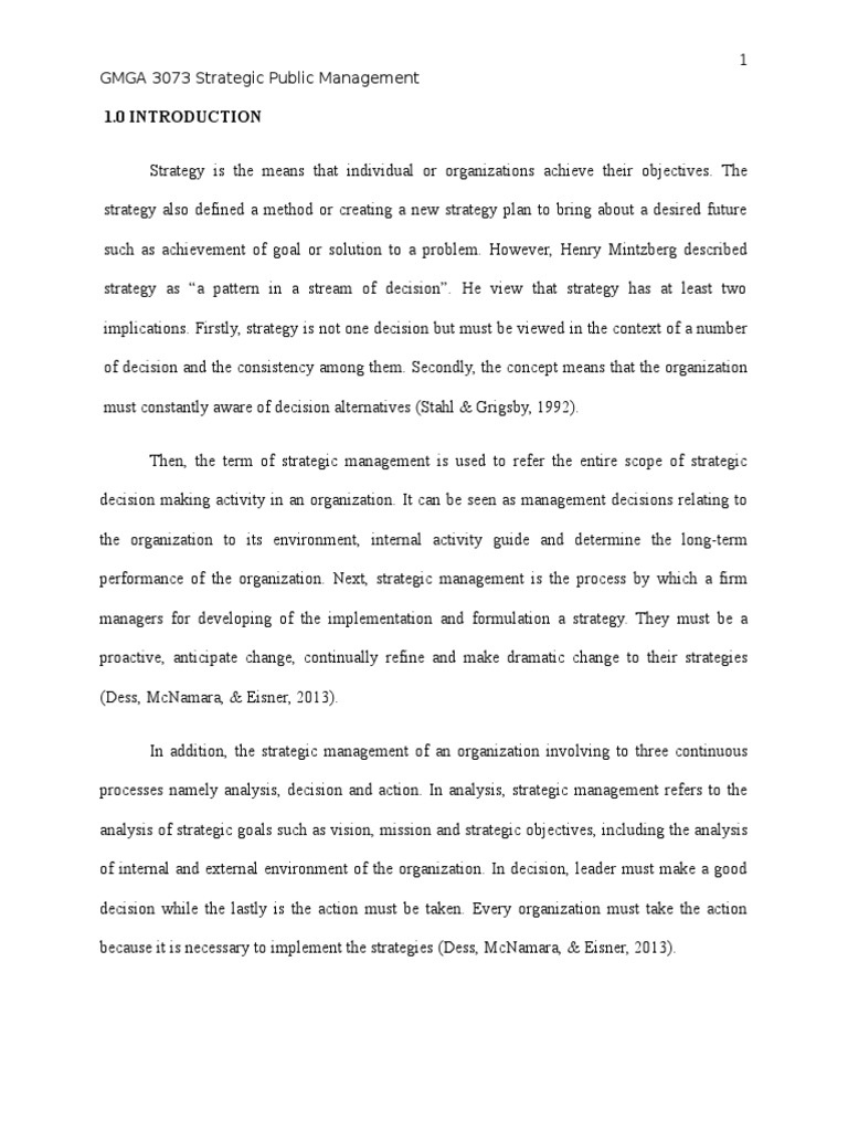 Next, Bryson (1995) defined the strategic management is a disciplined effort to produce