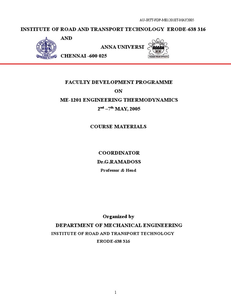 ME-1201 ENGINEERING THERMODYNAMICS