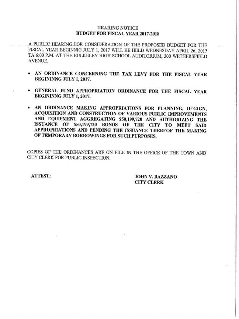 Legal Notice - Public Hearing For The Proposed Budget For The Fiscal Year Beginnig July 1 2017