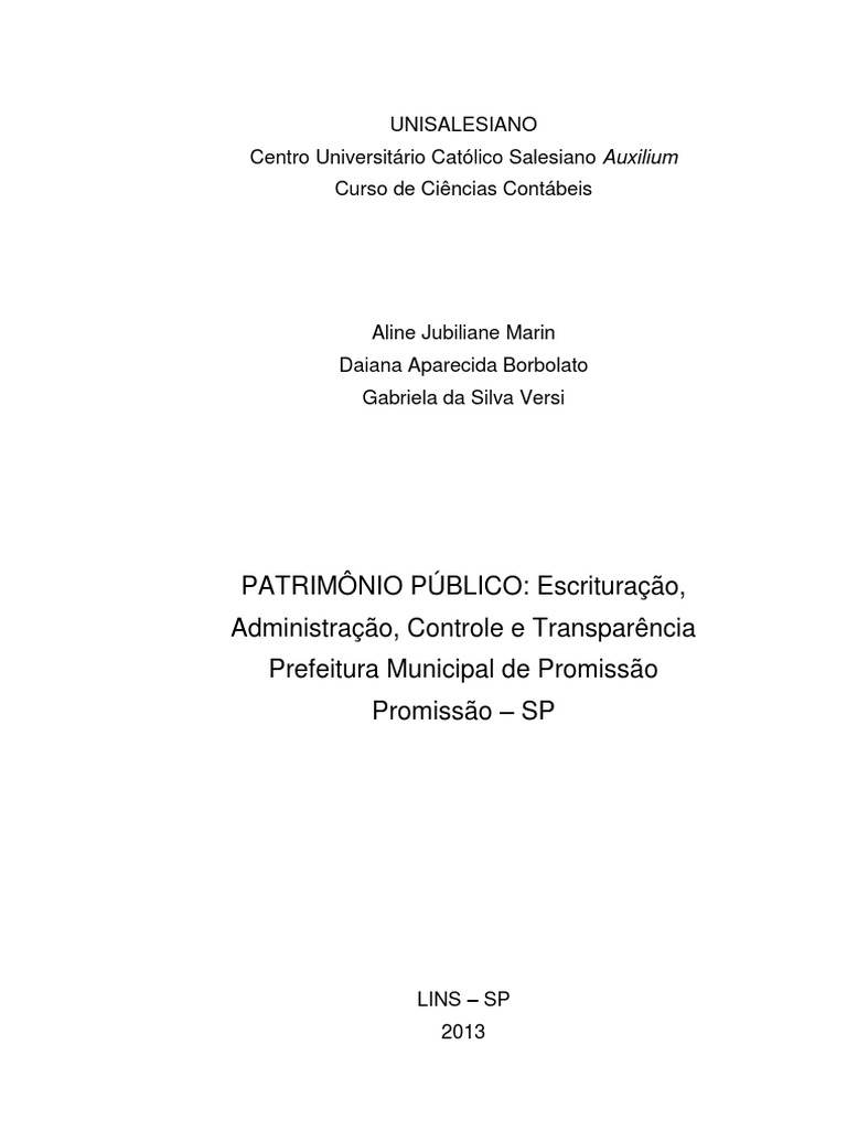 PATRIMNIO PBLICO: Escriturao,