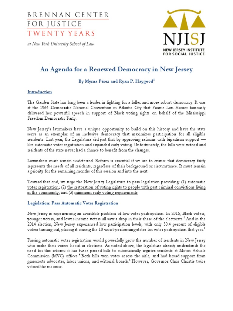 An Agenda For A Renewed Democracy in New Jersey