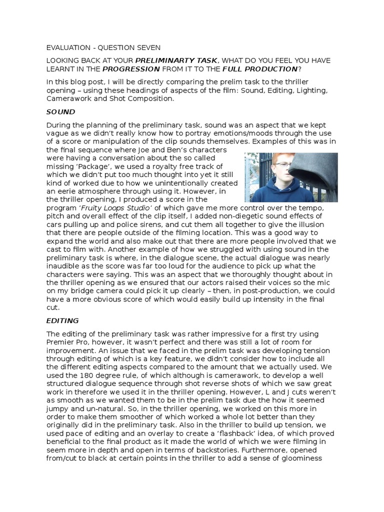 Overall, in terms of editing, the thriller opening was a more advanced product