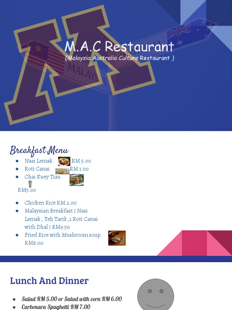 Information : Spaghetti with chicken nuggets, French fries and Milo RM 30.00