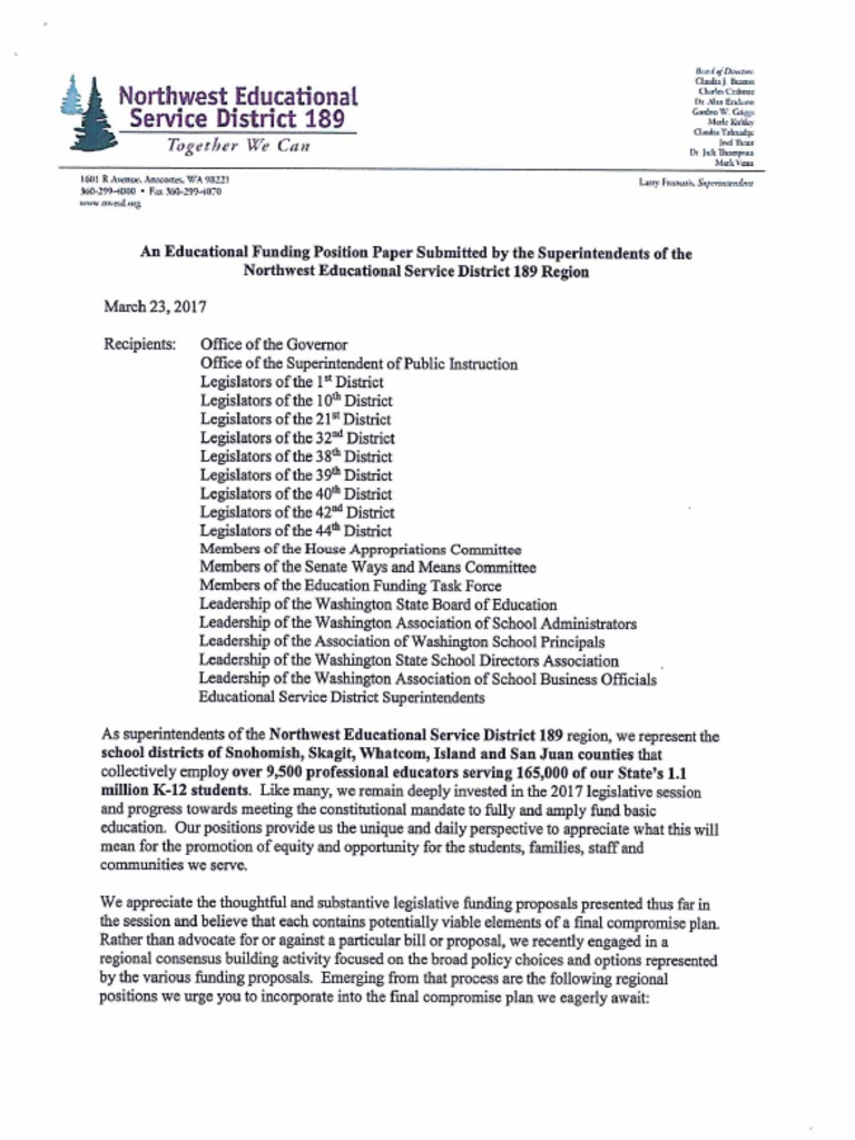 An Educational Funding Position Paper From Superintendents of NW Educational Service District 189, Washington
