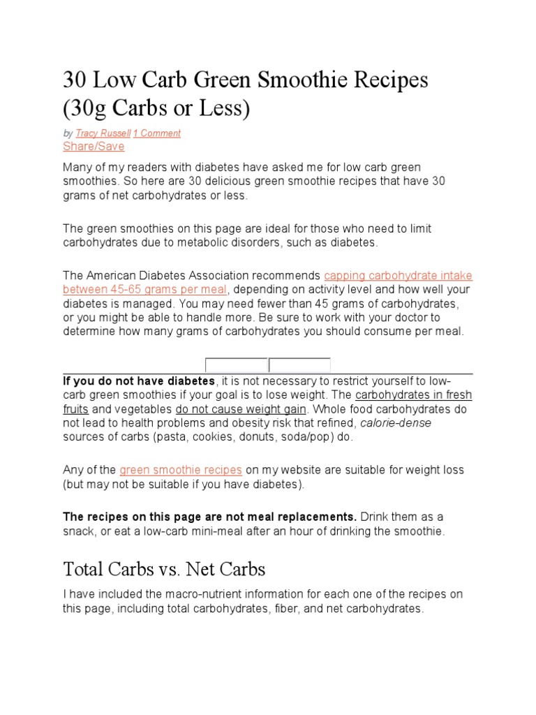 carb green smoothies if your goal is to lose weight. The carbohydrates in fresh