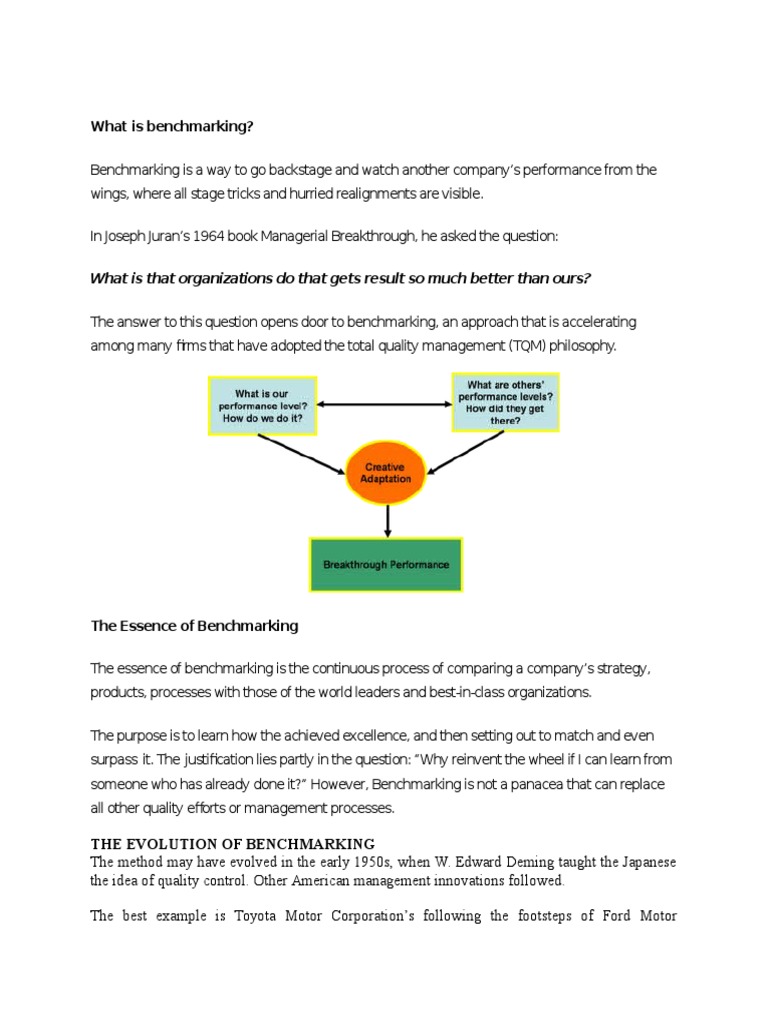 follow through. An additional example of benchmarking is internal evaluation.