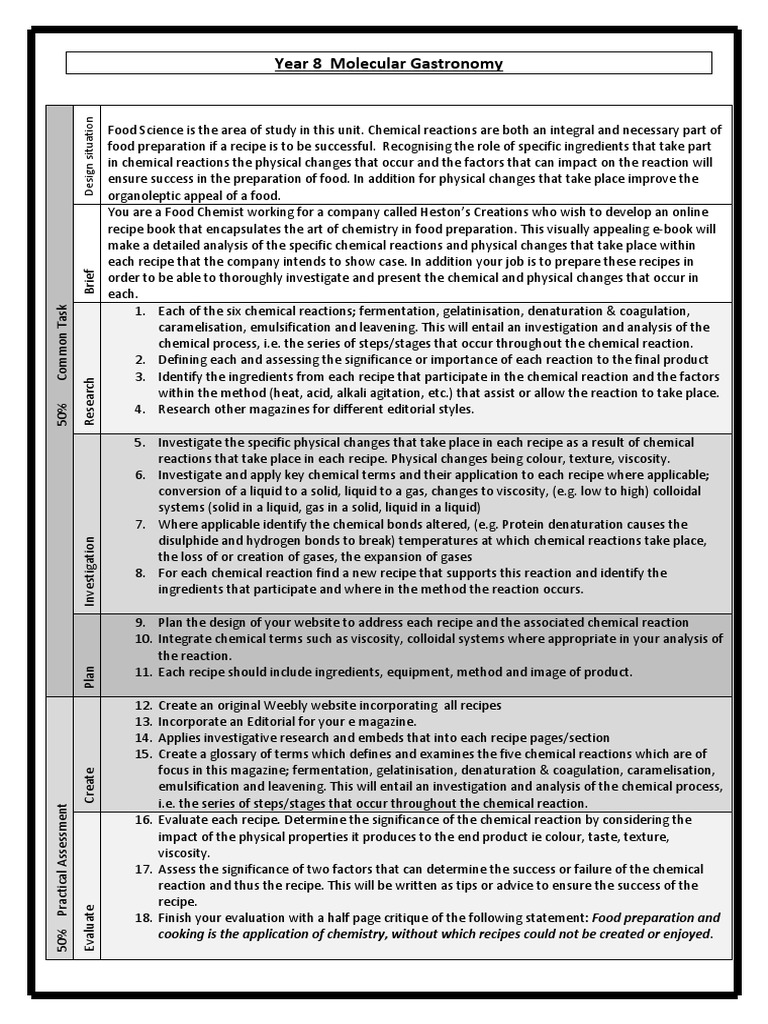 caramelisation, emulsification and leavening. This will entail an investigation and analysis of the