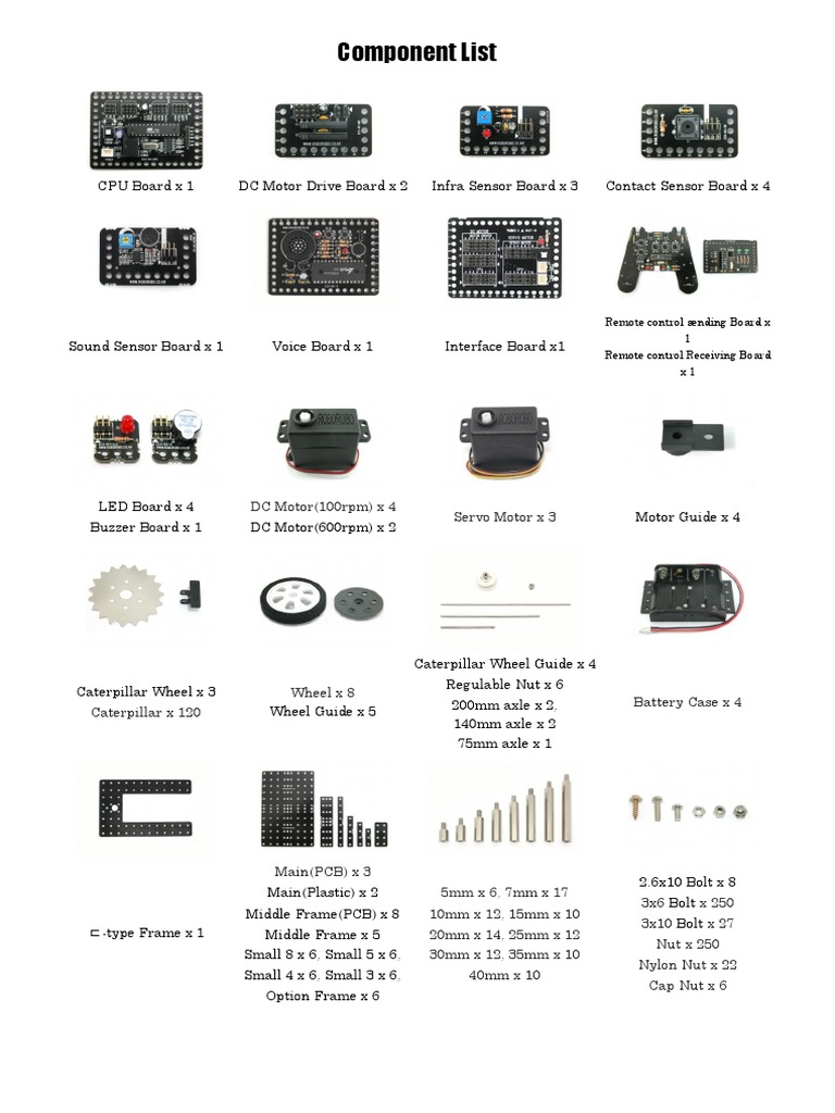 CPU Board x 1 DC Motor Drive Board x 2 Infra Sensor Board x 3 Contact Sensor Board x 4
