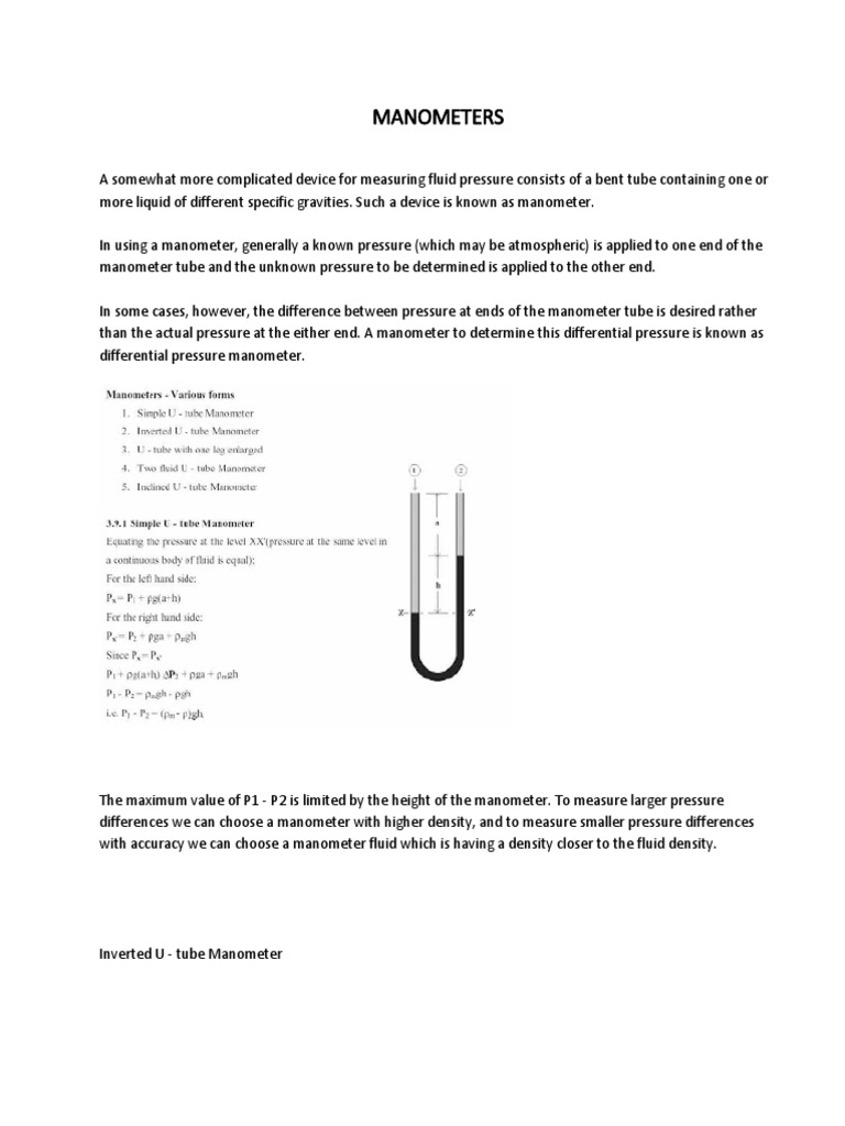 In some cases, however, the difference between pressure at ends of the manometer tube is desired rather
