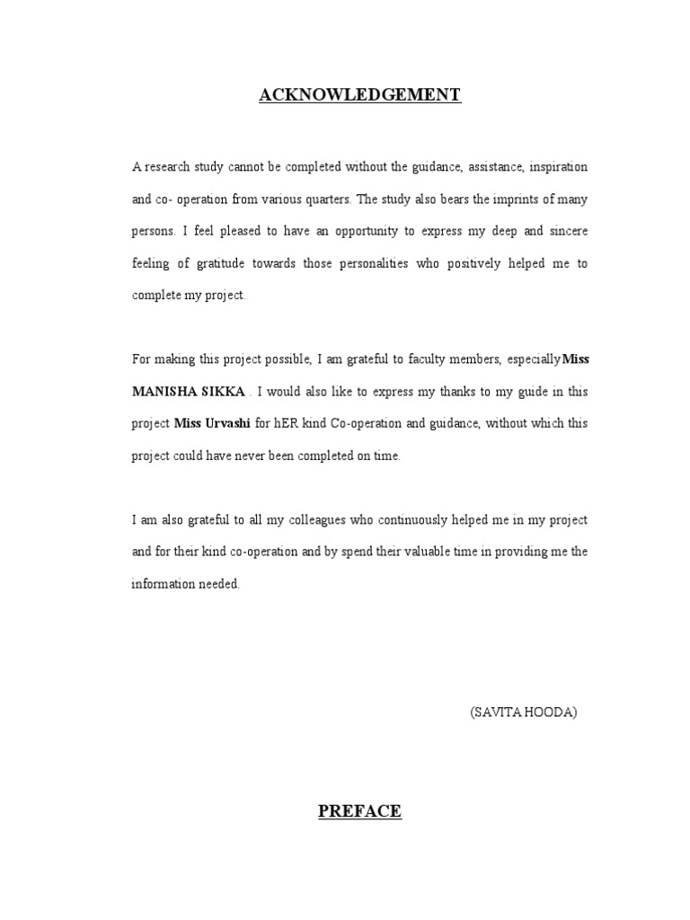 Acknowledgement: MANISHA SIKKA - I Would Also Like To Express My Thanks To My Guide in This