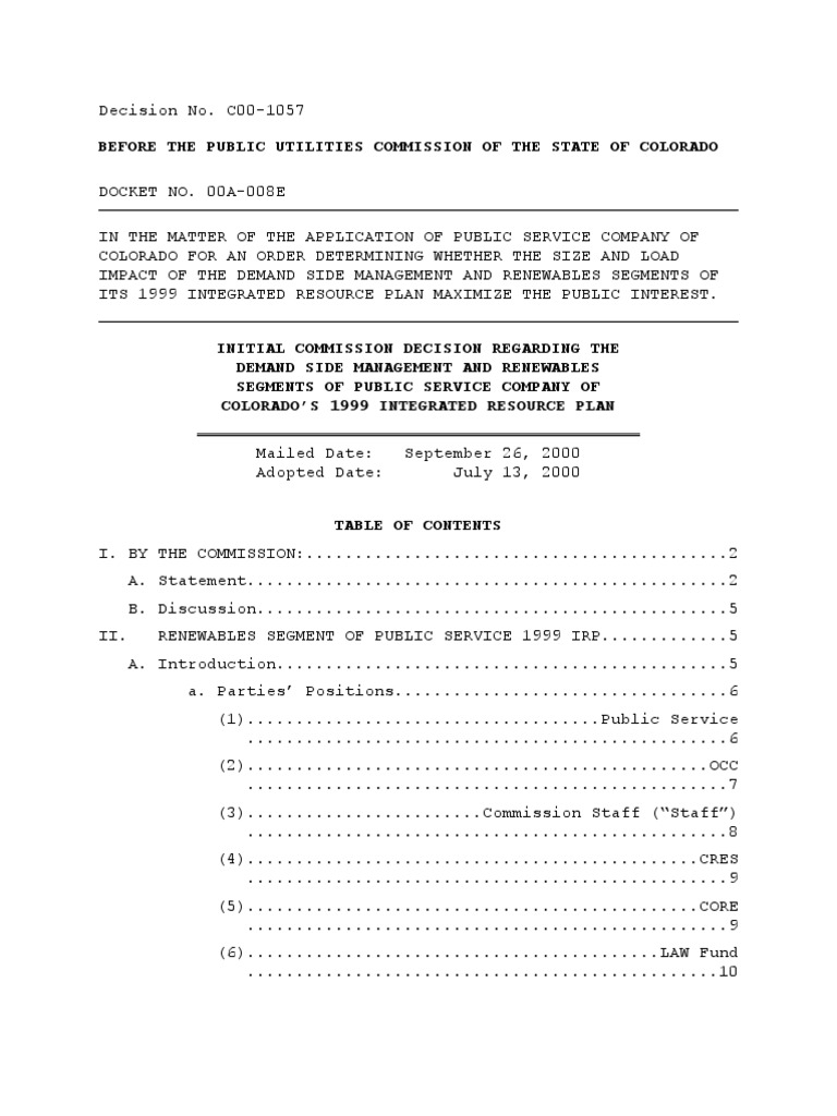 II. RENEWABLES SEGMENT OF PUBLIC SERVICE 1999 IRP.............5