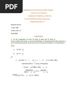 I. Mass solids= wt dry solids TSS, mg/L= volume of sample x 100%