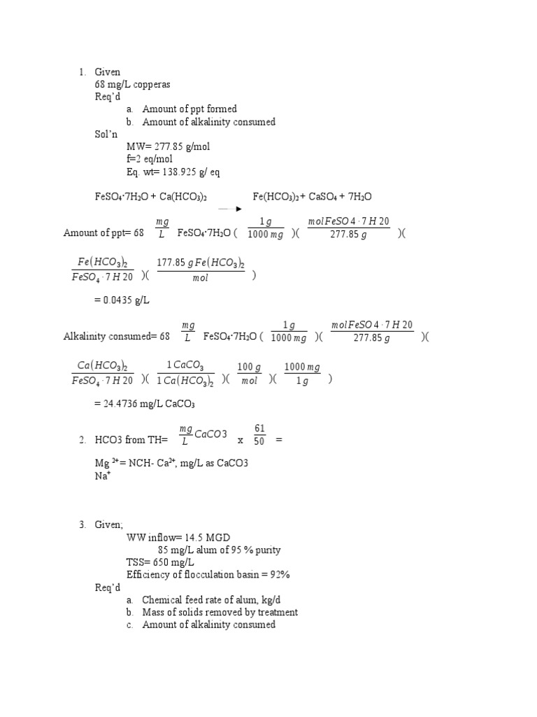 FeSO 4 7 H 20 )( 1 Ca(HCO3)2 )( mol )( 1g )