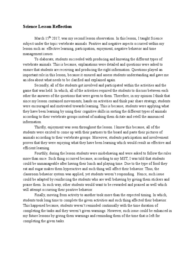 Science Lesson Reflection