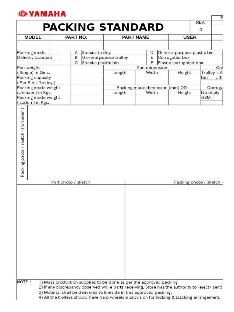 NOTE : 1) Mass production supplies to be done as per the approved packing