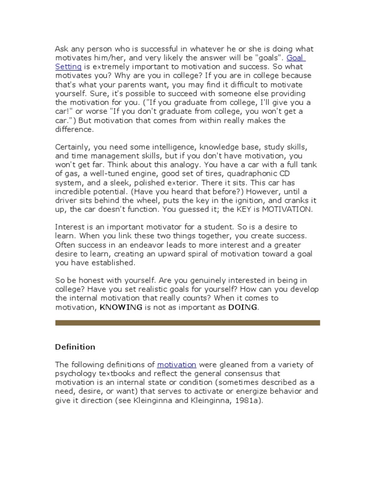 motivates you? Why are you in college? If you are in college because