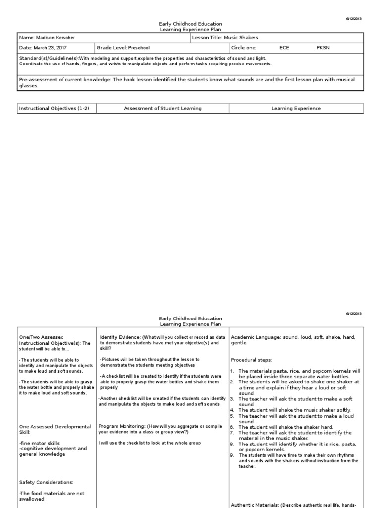 Name: Madison Kerscher Lesson Title: Music Shakers