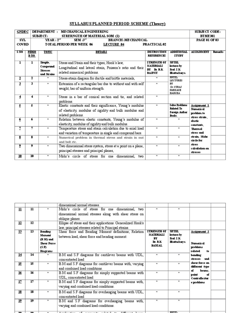 SUBJECT: STRERNGTH OF MATERIAL SOM (1) BTME301