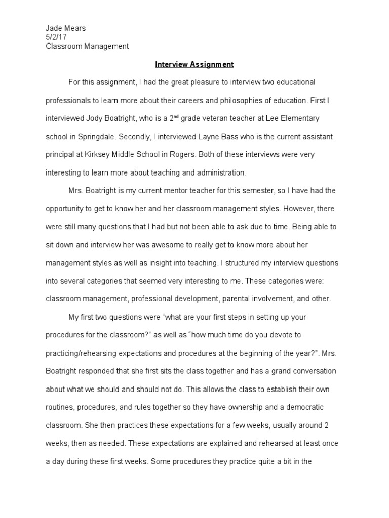 management styles as well as insight into teaching. I structured my interview questions