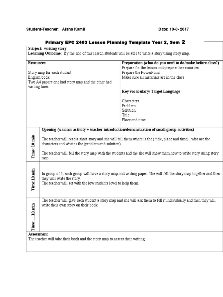 Grade Level: 2 EPC 2403 Lesson Planning Template Year 2, Sem 2