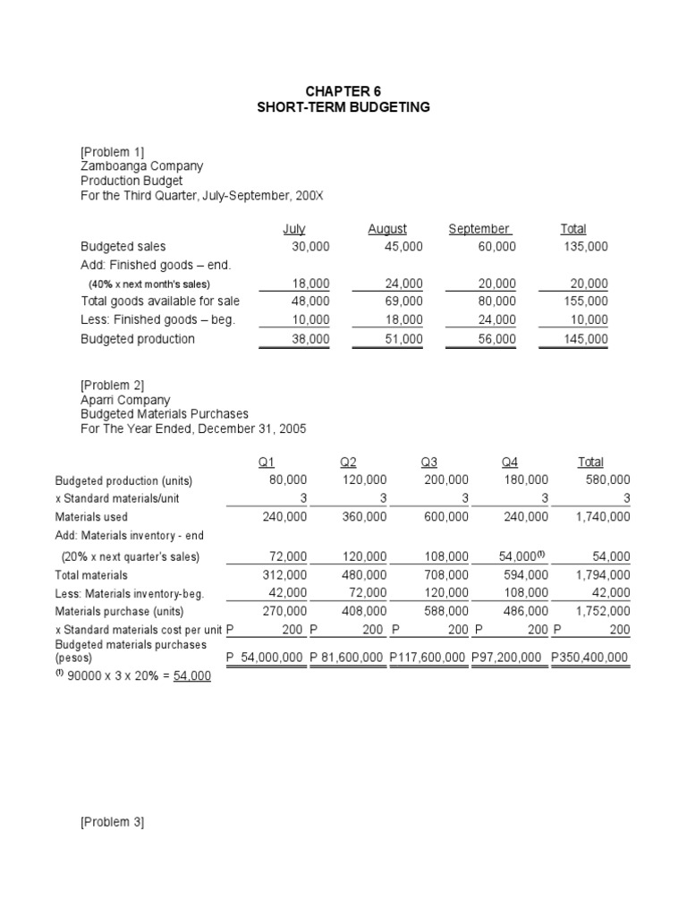 Budgeted direct labor costs P 191,000 P 162,350 P 171,900 P 525,250