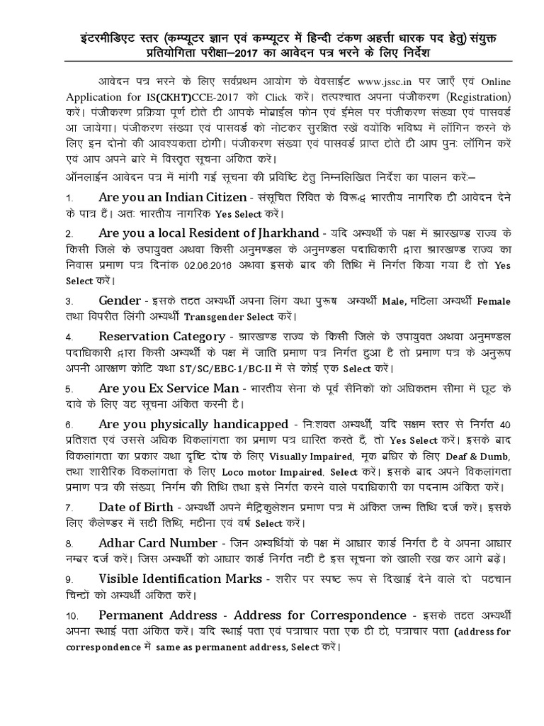 izfr;ksfxrk ijh{kk&2017 dk vkosnu i= Hkjus ds fy, funsZ'k