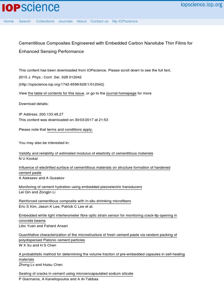 [9] Wong I, Loh K J, Wu R and Garg N 2014 Sensing properties of mortar incorporating ultra-low